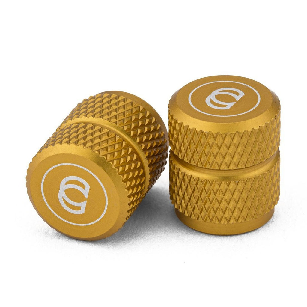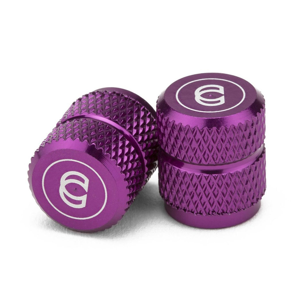 Coppia di tappi per camera d'aria Cinema, realizzati in alluminio 6061 con zigrinatura esterna per una maggiore presa. Dona un tocco di swag alla tua BMX! Questi tappini sono compatibili solamente con camere d'aria con valvola di tipo Schrader.