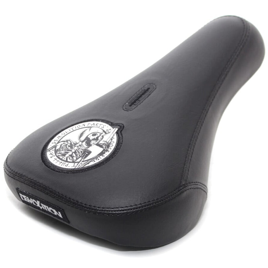 Sella Demolition Fast And Loose V2 versione fat, signature del rider australiano Jason Watts! Realizzata in morbida similpelle con una struttura a 3 pezzi con cuciture nere, etichetta tessuta Demolition sul retro e logo signature di Jason con uno scheletro che fa il famoso "shoey".