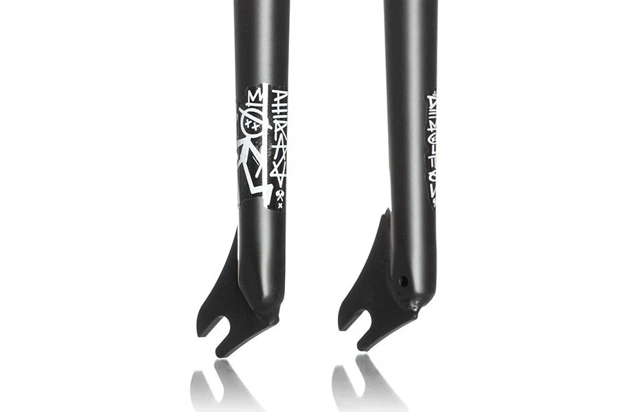 The all new Signature Kevin Peraza KP fork is made from 100% heat treated CRMO hydroformed tubing with solid cnc dropouts. Kevin has been testing these for the last two years and couldn't be more stoked. The feature a 1-pc internally and externally butted steerer tube and tapered legs. Wider blades to fit bigger tires.  Legs cut for pegs and custom designed for strength and durability while grinding. Clean and tight inside dropout/leg weld for our whistler front hubguard clearance.