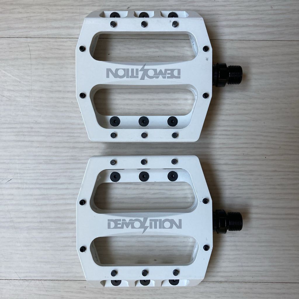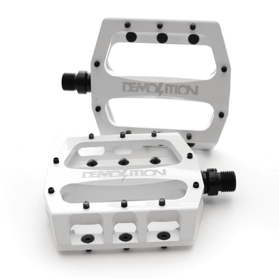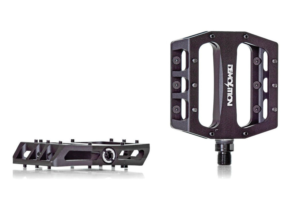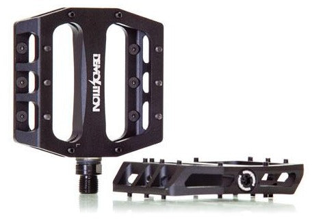 Pedali Demolition Trooper Alu, con corpo in alluminio 6061 T6 lavorato al CNC, dal design sottile. Il pedale è concavo orizzontalmente per aderire meglio alla suola della scarpa e monta 10 pin filettati e rimovibili su ciascun lato. L'asse è realizzato in Chromoly trattato termicamente e monta cuscinetti sigillati, con una boccola in policarbonato per prolungarne la longevità. Si possono montare anche internamente con una chiave a brugola da 8 mm.