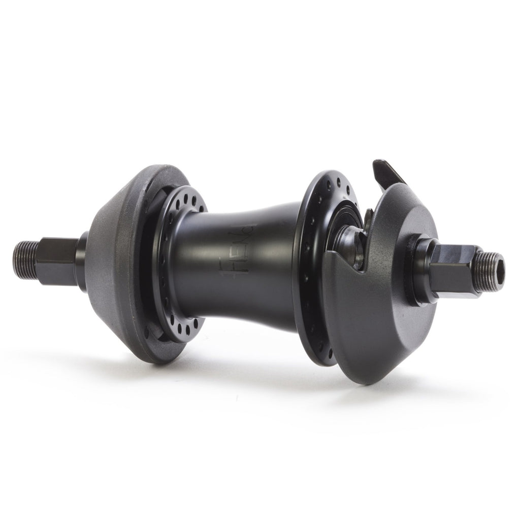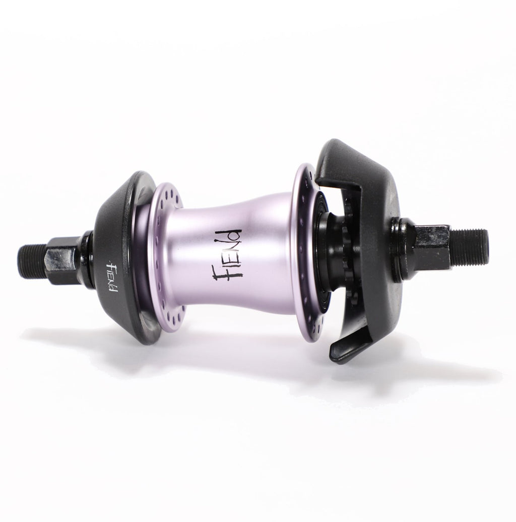 Mozzo posteriore Fiend Cab V2 Freecoaster, dotato di un guscio a 36 fori in lega lavorata a CNC che è stato lavorato per ridurre il peso e apparire più simile a un mozzo cassette che a un freecoaster. Questo mozzo sfrutta un sistema di ritenzione della frizione in nylon per una minore manutenzione, un asse cavo in Cromo da 14 mm, driver da 9 denti e include hubguards in nylon sia lato drive che lato non drive.