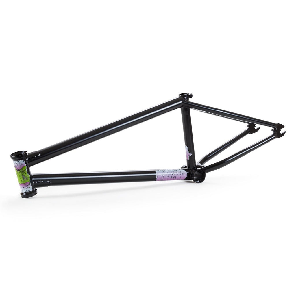 Telaio Fiend Morrow V4, signature del rider Ty Morrow. Progettato direttamente dal rider secondo le sue esigenze, questo telaio è realizzato in Chromoly 4130 trattato termicamente con un top tube a doppio spessore con un rinforzo esterno. Il down tube è di forma ovale e anch'esso a doppio spessore, sempre con un rinforzo esterno. I tubi del carro sono affusolati, mentre il seat tube presenta un morsetto sella integrato ed è rinforzato esternamente. I dropout da 6 mm di spessore hanno i tendicatena integrati.