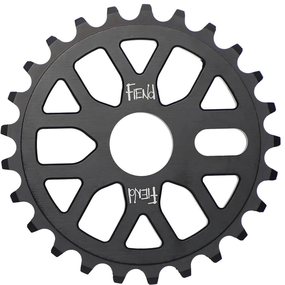 CNC machined from 6061 aluminum with a unique guard design and offset teeth for better chain alignment. Includes 22mm spindle adaptor.