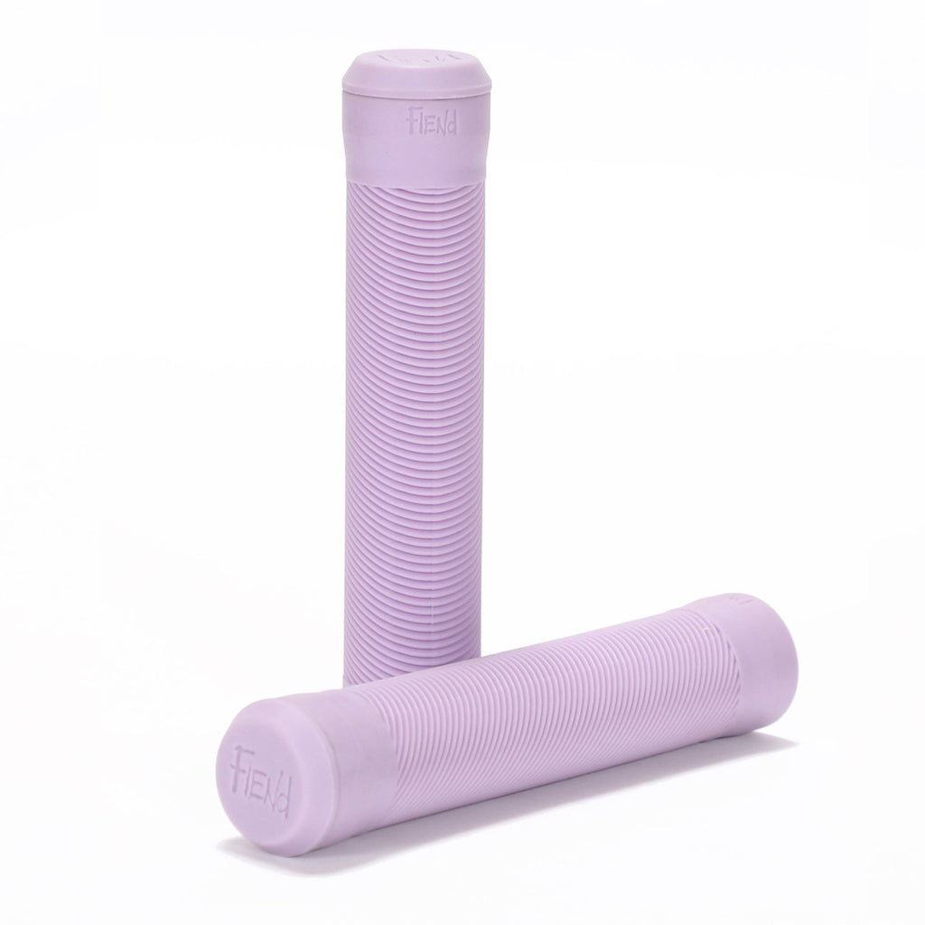 Manopole Fiend Team, realizzate in gomma Krayton di media densità con motivo a costole inclinate per il massimo grip e comfort. Includono due bar ends in nylon da montare a pressione.
