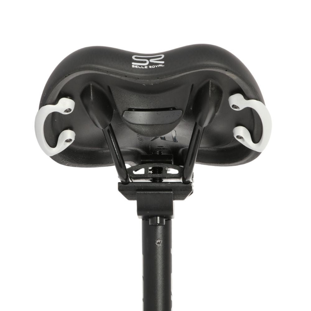 The aluminum seatpost is lightweight, while the ultra-comfortable saddle features two cushions to absorb vibrations from uneven terrain.
