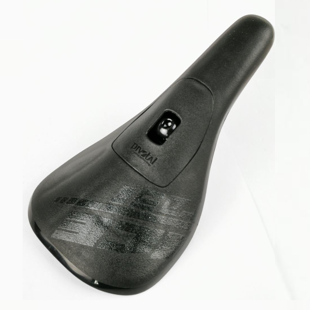 Sella ICE Element Blackout Race con attacco Pivotal, leggera e specifica per BMX Race essendo senza imbottitura. Il sistema di regolazione Pivotal consente di regolarla a qualsiasi inclinazione. Base in plastica nera opaca con decalcomania nera lucida.