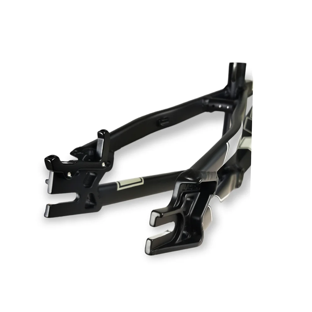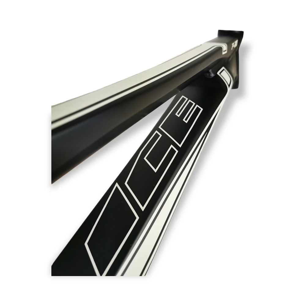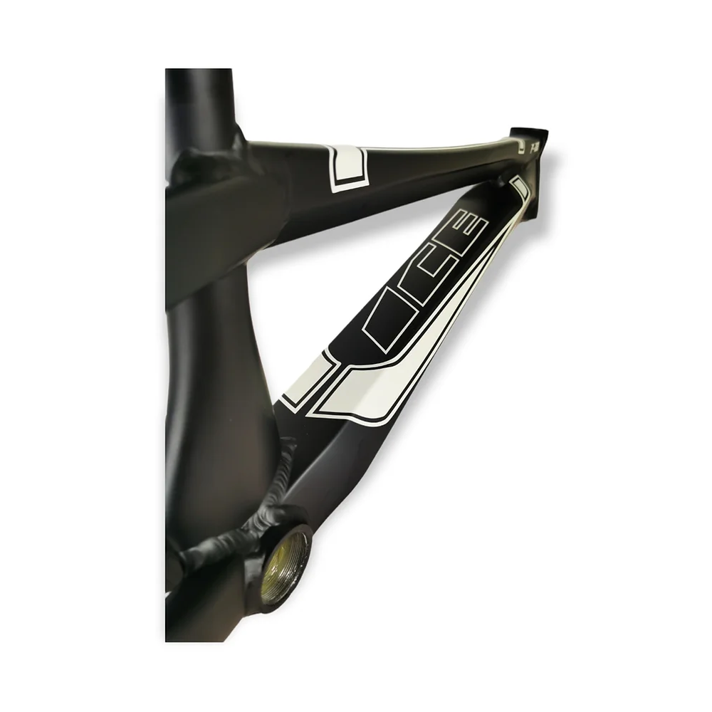 Telaio in alluminio ICE Element F-22, il successore del telaio F-118 è finalmente qui! Interamente progettato e costruito su una base di tubi dalla forma resistente e originale, questo telaio è diverso da qualsiasi altro nel settore delle BMX! Il seat tube a forma di pinna di squalo e il down tube eccessivamente largo conferiscono a questo telaio un aspetto incomparabile e un look aggressivo.