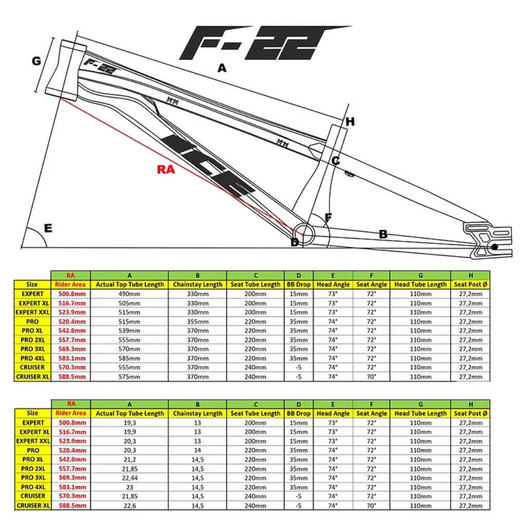 Disponibile in diverse misure dalla taglia Expert alla taglia Cruiser XL, scopri tutti i dettagli delle misure e delle geometrie nell'ultima foto della galleria immagini.