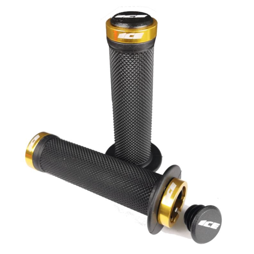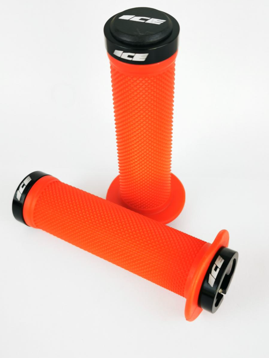 Manopole lock on ICE Element Fury, con zigrinatura a forma di diamante e diametro da 30 mm, sono molto sottili e offrono una presa eccellente, un must per i riders di BMX Race! Molto simili alle manopole Diamond ma con una flangia interna dell'impugnatura. Le chiusure lock on sono realizzate in alluminio lavorato a CNC.