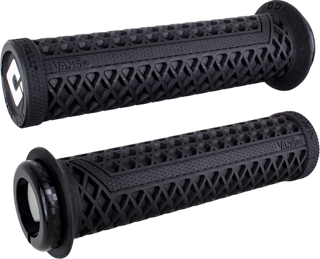 Two California Originals have teamed up to bring you an updated version of one of your favorite grips. The new Vans v2.1 Lock-On Grips feature a new single-clamp design for simplified installation and an updated waffle pattern for better comfort and control. The grips are constructed from ODI’s proprietary Soft Compound materials and are available in six awesome colors with custom checkered clamps in coordinating colors. This modern take on the Vans grip adds updated features to the classic design while still providing the rider with the distinctive feel that they have come to love.