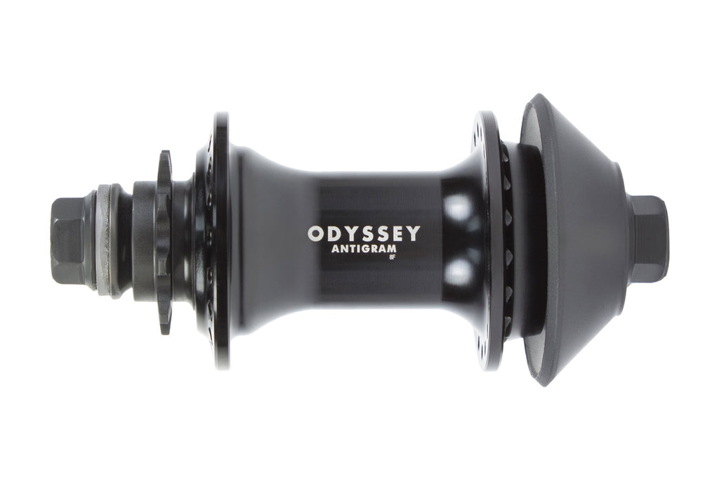 Mozzo posteriore cassette Odyssey Antigram V2, un mozzo davvero imbattibile! Forte, leggero e ad un prezzo ragionevole, l'Antigram è il cavallo di battagli di Odyssey da diversi anni ormai: versione maschio con bulloni, commutabile sia per guida a sinistra (LHD, left hand drive) che per guida a destra (RHD, right hand drive) e viene fornito con una protezione del mozzo sostituibile. La scocca del mozzo è realizzata in alluminio forgiato 2014-T6, che alloggia dei cuscinetti a sfera a cartuccia sigillata 6903RS. I bulloni sono da 14 mm in Chromoly con un'asse femmina da 17 mm sempre in Chromoly 4130. Il driver da 9T con un design a molle indipendenti a 3 denti e cuscinetti a rullini di precisione, è commutabile da LHD a RHD tramite un'operazione semplicissima.