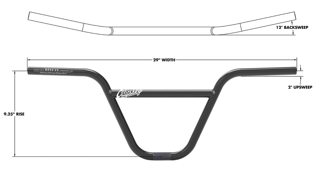 Manubrio Odyssey Boss V2, versione aggiornata del manubrio signature di Aaron Ross. Realizzato con un tubo principale multistrato di spessore 1,8 / 1,3 mm ed un crossbar tradizionale rinforzato da 7/8". Caratterizzato da curve ad ampio raggio per una maggiore durata e da un trattamento termico post-saldatura.