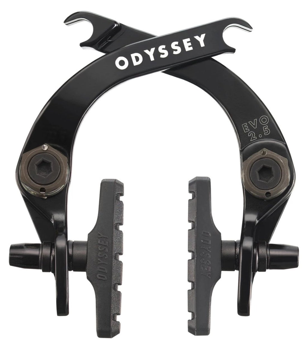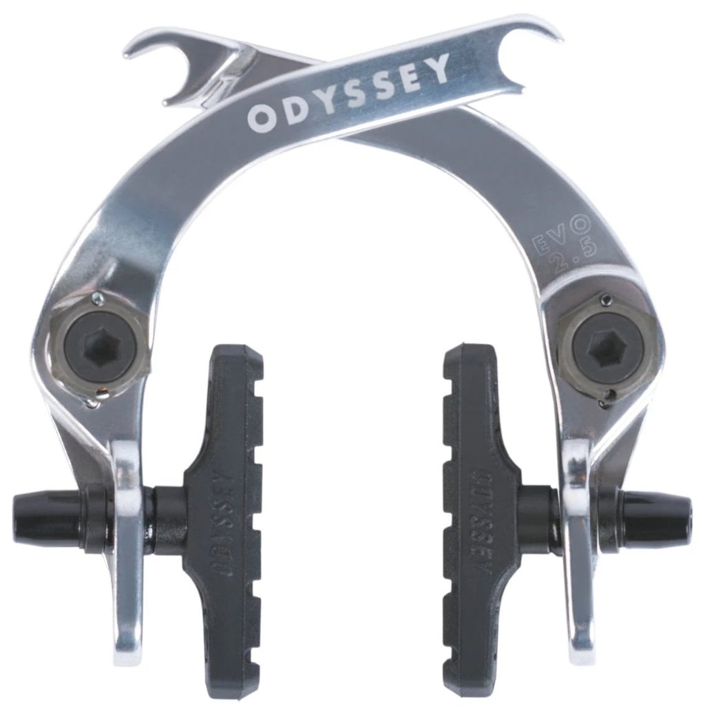 Freno Odyssey Evo 2.5, una versione remixata del freno Evo 2, diventato leader del settore e amato da molti riders, con molto più spazio per copertoni più grandi e moderni. Proprio come il classico Evo 2, è costruito attorno ad una funzionalità modulare dell'hardware e ad un valore alto ma con un prezzo conveniente. Installarlo come freno posteriore o freno anteriore è semplicissimo, in quanto viene fornito con il comodo cavo a cavalletto a due falde di Odyssey, un gancio per cavi curvo personalizzato e una serie di hardware per adattare il freno ad ogni possibile configurazione. Forgiato dall'alluminio per garantire maggiore resistenza ed evitare inutili sovraccarichi dovuti ad una superficiale lavorazione al CNC, il freno Odyssey Evo 2.5 è disponibile anche in kit con leva Monolever e cavo Linear Slic. Questo freno è inoltre dotato di due set di molle per tensione/modulazione dura e morbida, con indicatori di tensione a molla per una facile installazione, mentre i capicorda sono più piccoli e usano una testa esagonale da 10 mm.