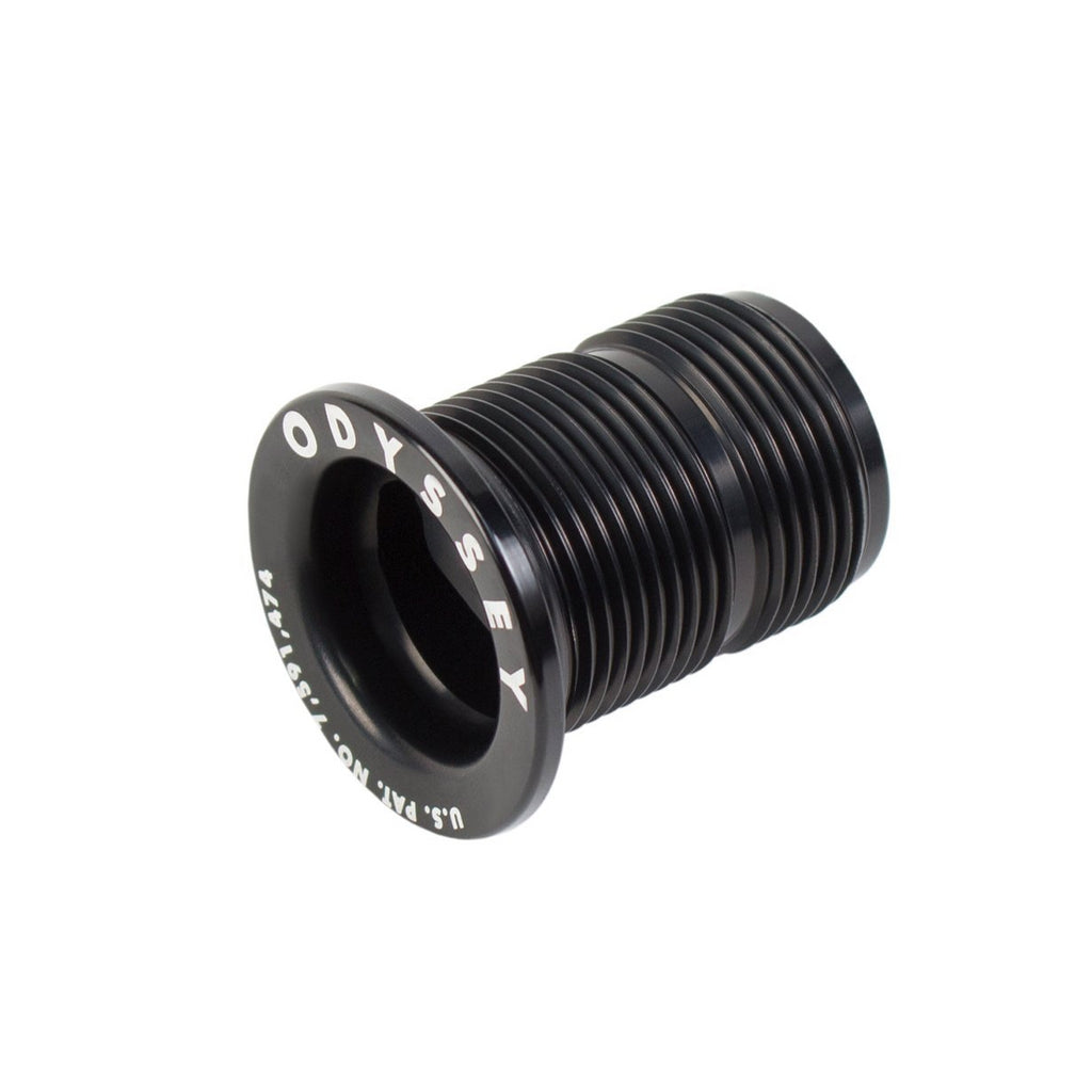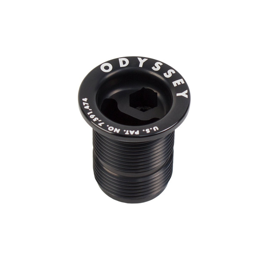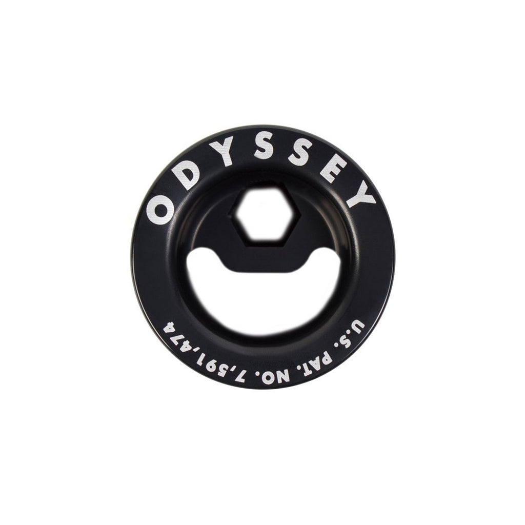 Tappo di precarico di ricambio per forcelle Odyssey. Realizzato con un design personalizzato in alluminio 7075-T6, è incluso con le forcelle R15, R25 e R32. Questo tappo è dotato di un innesto adatto sia per chiavi a brugola da 6 mm che da 8 mm, di una canalatura del filo facile da tagliare per accorciare il tubo sterzo della forcella, di un foro passante per il cavo freno anteriore per una rimozione senza dover scollegare l'hardware del freno. Coperto dal brevetto USA n. 7.591.474.