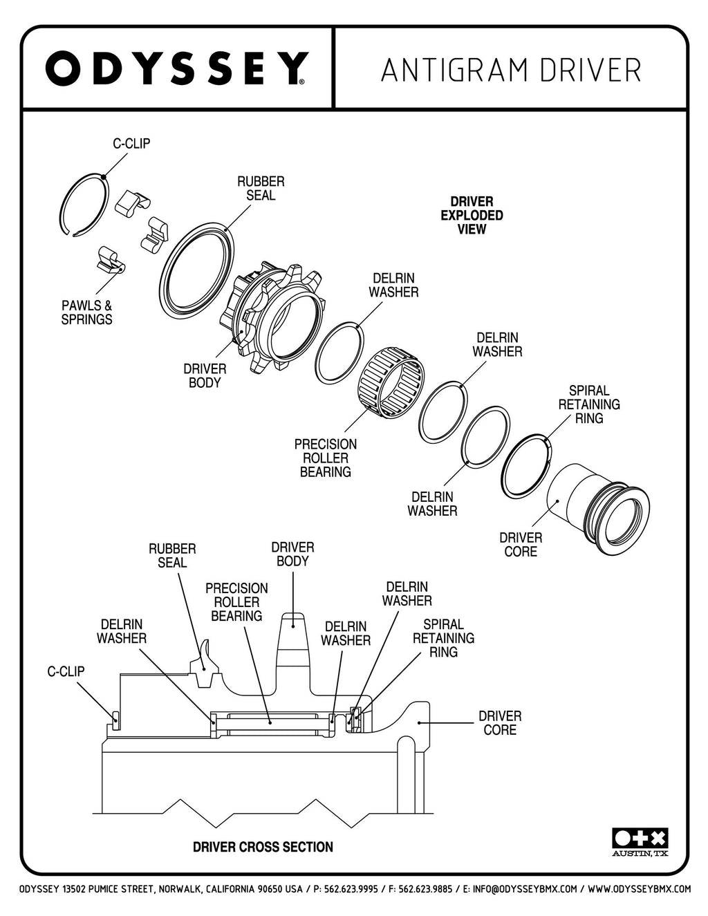Driver 9T di ricambio specifico per mozzi posteriori Odyssey Antigram cassette, con design a molle indipendenti a 3 nottolini e cuscinetti ad aghi in gabbia di precisione. Convertibile facilmente da LHD (left hand drive, guida a sinistra) a RHD (right hand drive, guida a destra). Un kit di sostituzione di molle e placchette (springs and pawls) è disponibile separatamente.