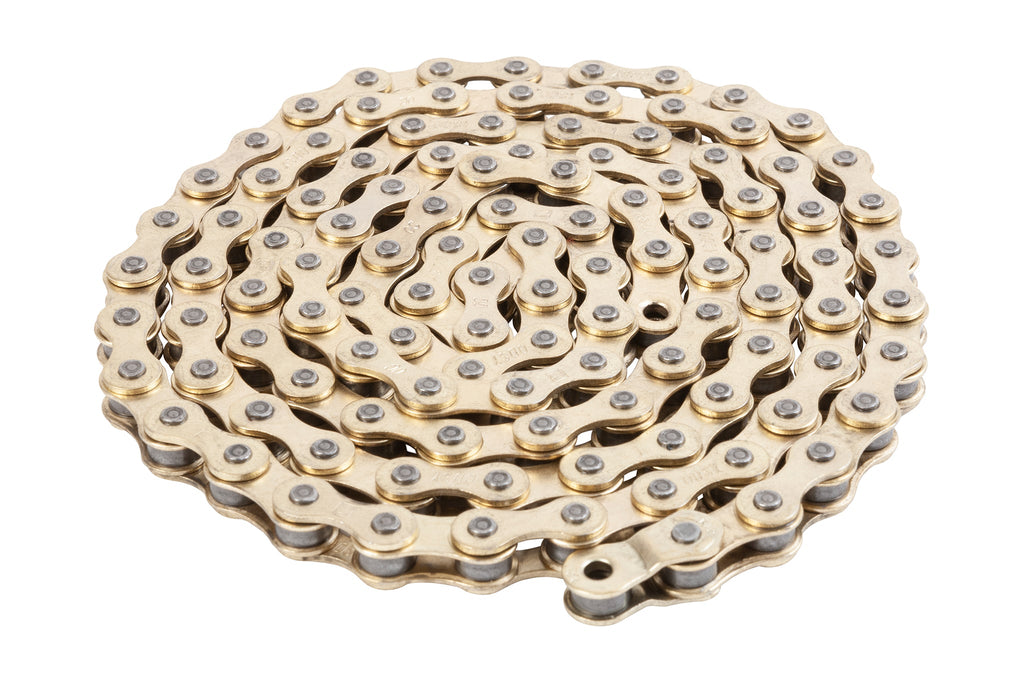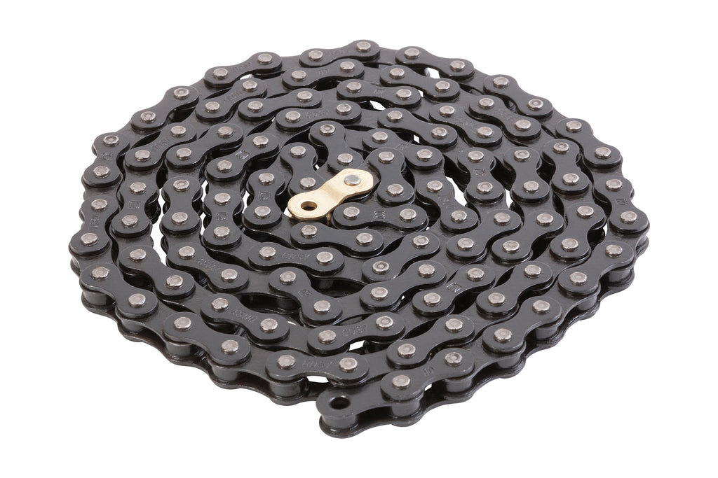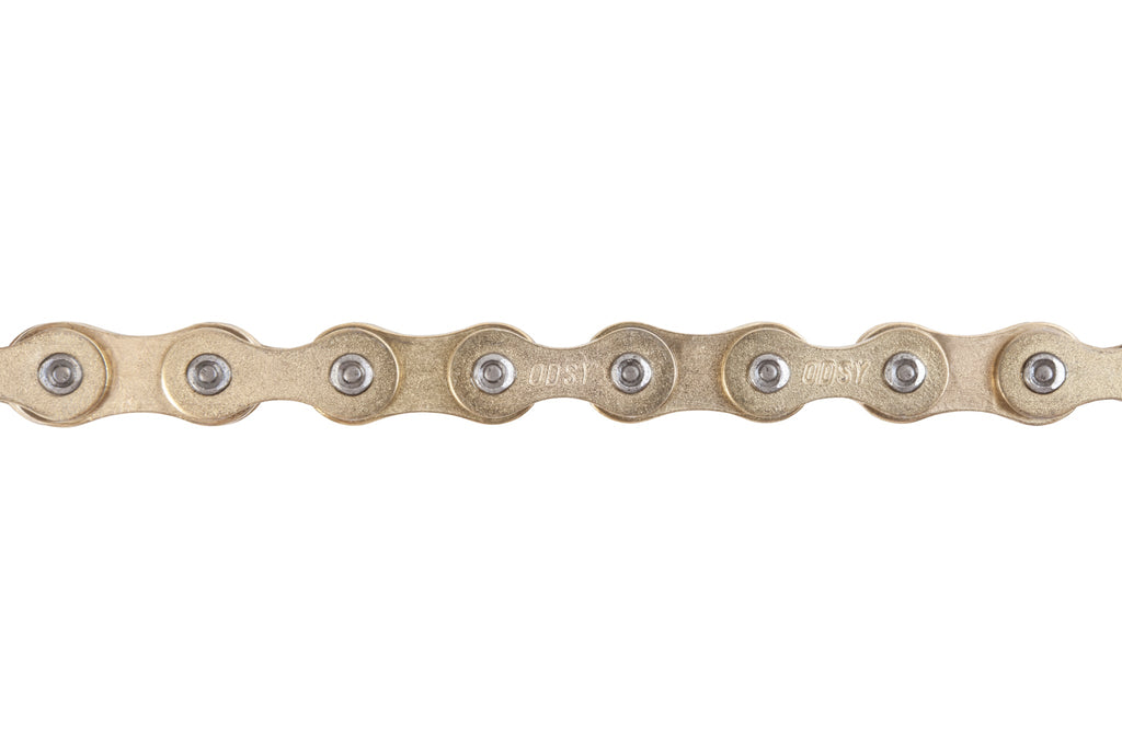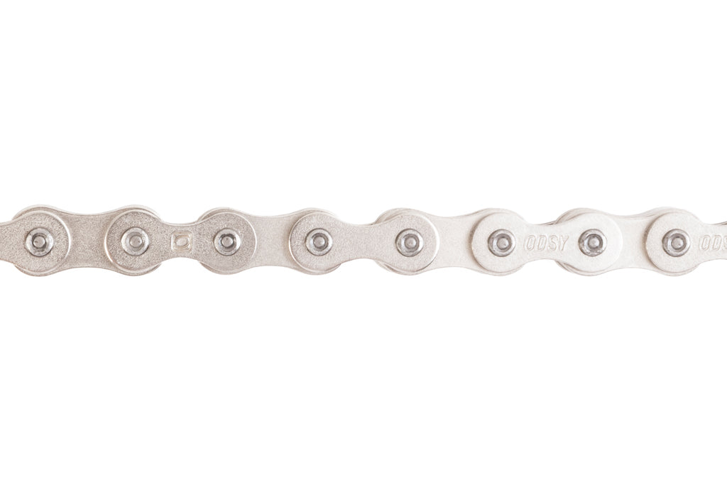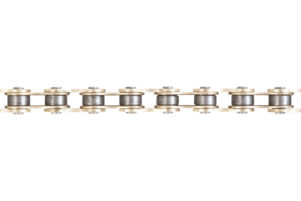 Catena Odyssey Bluebird, che sfrutta come base di partenza la collaudata e affidabile catena KMC 510-HX a cui è stata aggiunta un'estremità a mezza maglia fissata in modo permanente e installata in fabbrica. Quando la catena viene tagliata a misura, puoi facilmente decidere se utilizzare o meno la mezza maglia.