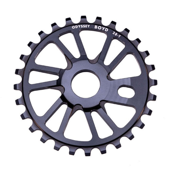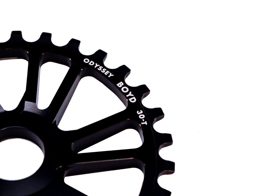 Corona Odyssey Boyd, signature del rider australiano Boyd Hilder. Caratterizzata da un aspetto classico ma accattivante, è realizzata in alluminio 7075-T6 lavorato al CNC. La corona presenta uno spessore maggiore verso il centro per un'elevata resistenza.