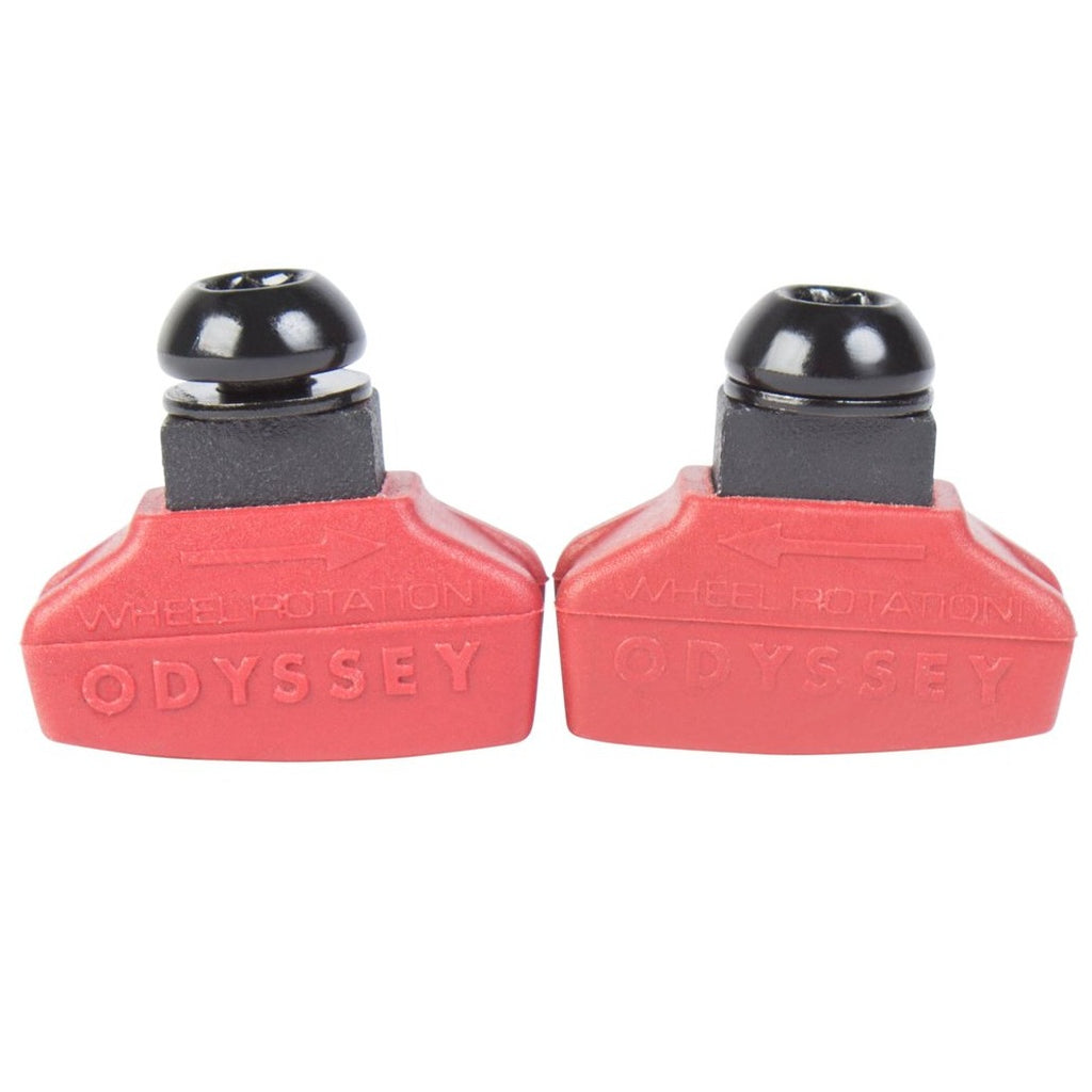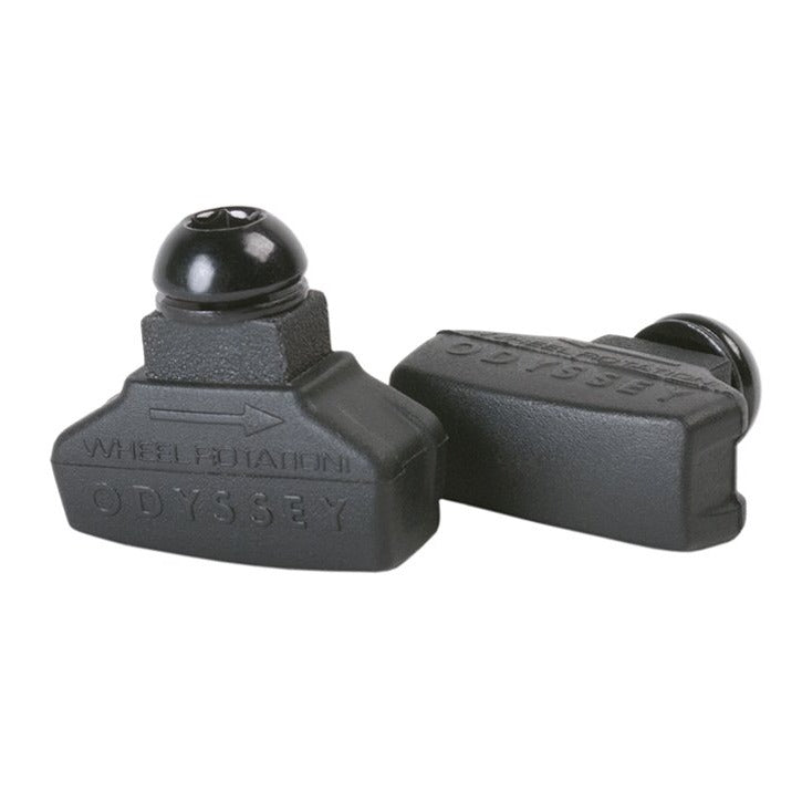 Pattini freno Odyssey Ghost Pads, ricambio per il freno completo Odyssey Springfield ma anche per tutti gli altri tipi di freno. Sono dei pattini estremamente facili da installare (e rimuovere), che sfruttano un sistema che elimina le rondelle svasate delle pastiglie tradizionali. Utilizzano un solido telaio in alluminio estruso all'interno e si caratterizzano per composti diversi in base al colore delle pastiglie stesse. Per montarle basterà avvitare un bullone femmina M6 con una chiave esagonale da 5 mm!