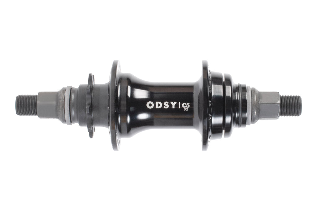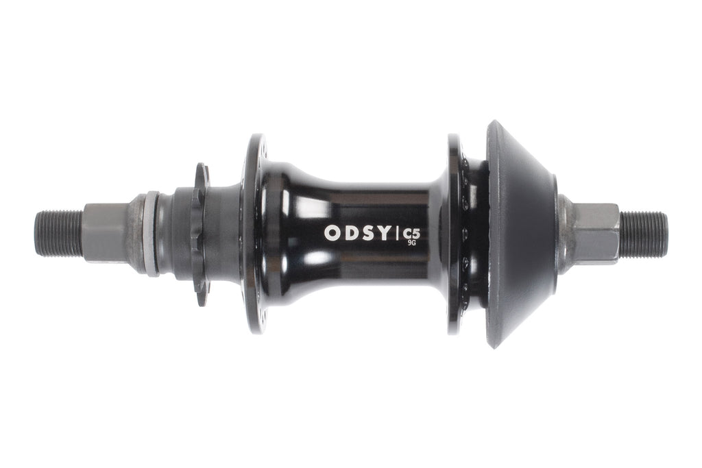 Mozzo posteriore cassette Odyssey C5, ultima novità in casa Odyssey! Il C5 è un mozzo robusto, leggero e conveniente progettato per durare nel tempo. Dotato di un guscio da 36 fori in alluminio 6061 T6, un asse maschio da 14 mm in Chromoly 4130, 3 cuscinetti a cartuccia 6802 sigillati e 2 cuscinetti a cartuccia 6903 della scatola mozzo sigillati. Come l'Antigram possiede un driver da 9T con design a molla indipendente commutabile sia per guida a sinistra (LHD, left hand drive) che per guida a destra (RHD, right hand drive). Nella confezione sono incluse due protezioni del mozzo in plastica sostituibili (compatibili con i mozzi Odyssey e GSport). Diametro effettivo della flangia drive side 49 mm, diametro effettivo della flangia non drive side 49 mm. Distanza flangia-centro drive side 27 mm, distanza flangia-centro non drive side 30 mm.