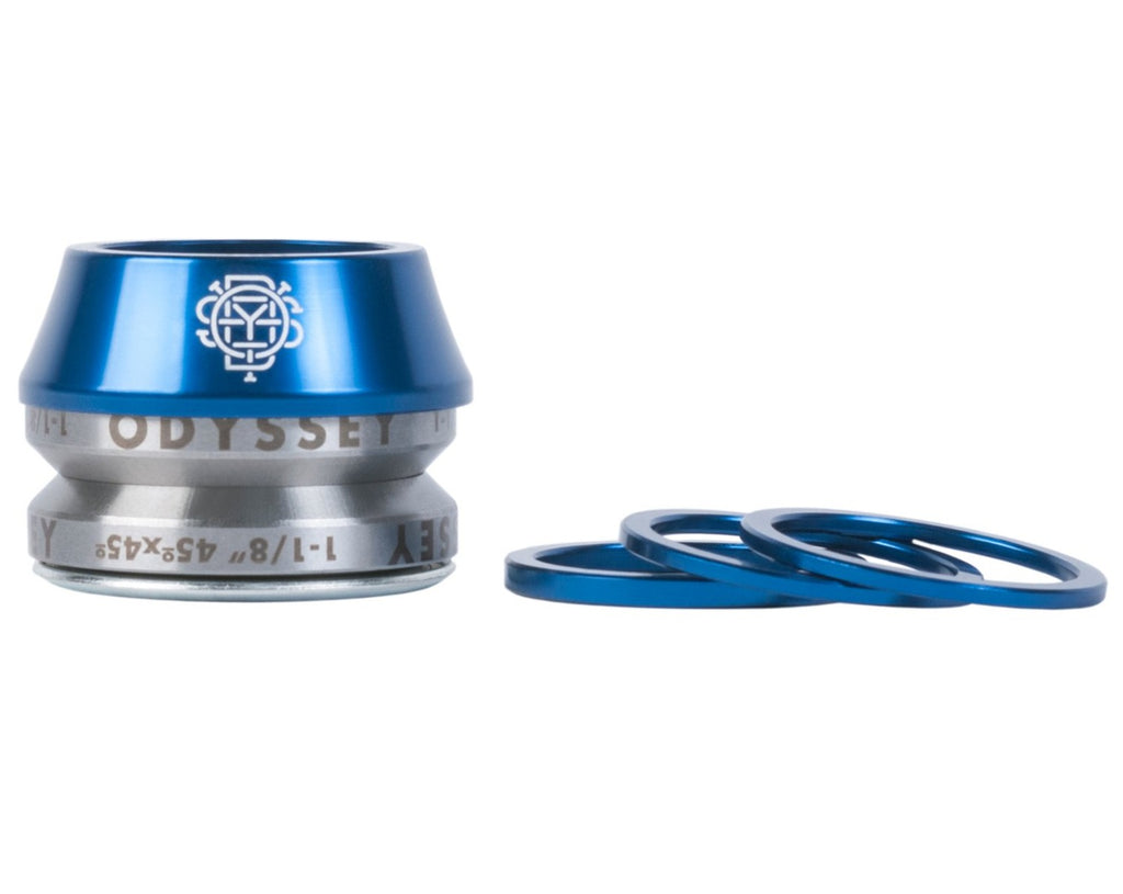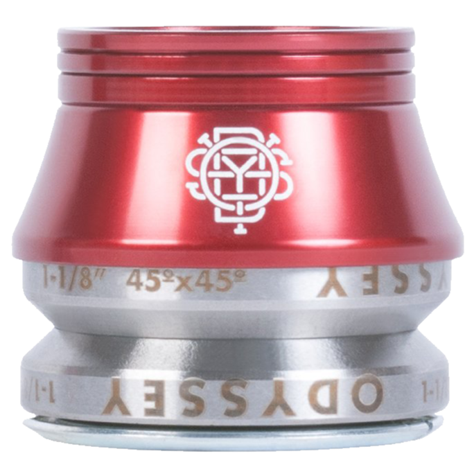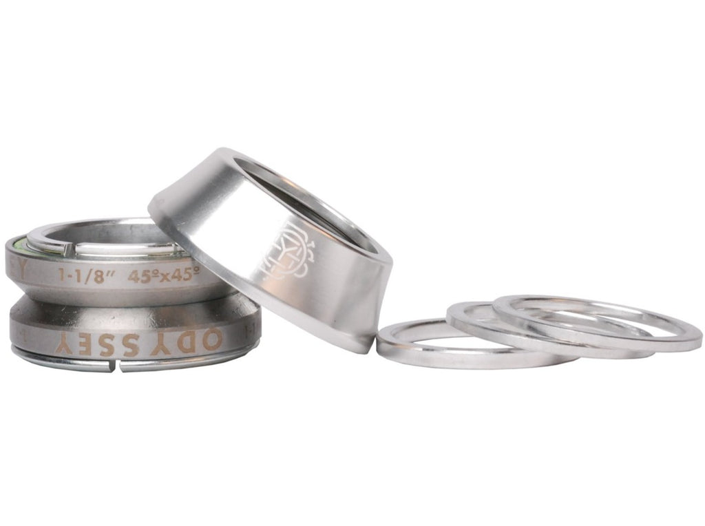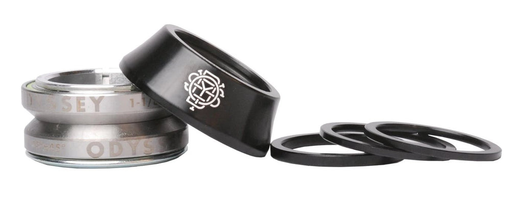 Serie sterzo Odyssey Pro Conical, con un nuovo design del cappuccio parapolvere con logo Monogram inciso al laser, per un look più pulito e adatto ad accogliere una guida con impostazione più alta, ma con meno distanziali. Questa serie sterzo ha la stessa qualità della Odyssey Conical, che utilizza cuscinetti sigillati di alta qualità e un cuneo affusolato di precisione per mantenere la serie sterzo sempre stretta. Sono inclusi un cappuccio parapolvere alto 15 mm, un distanziale da 3 mm e due da 2 mm. Le specifiche dei cuscinetti seguono gli standard Campagnolo, sono dei cuscinetti conici a 45° di misura 1" 1/8. Con un diametro esterno di 41,8 mm, questa serie sterzo è adatta a tubi sterzo BMX da 42 mm.
