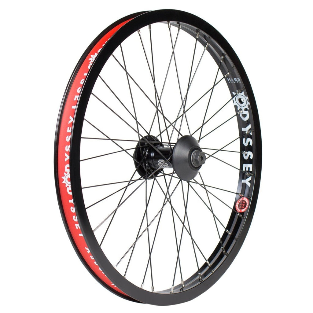 Ruota anteriore completa Odyssey Hazard + Vandero. Questa ruota completa è composta da un mozzo anteriore Odyssey Vandero allacciato tramite un set di raggi Odyssey HGS ad un cerchio Odyssey Hazard Lite, una combo davvero perfetta per chi ha bisogno di una ruota molto affidabile, senza nemmeno il bisogno di assemblarla o regolarla!