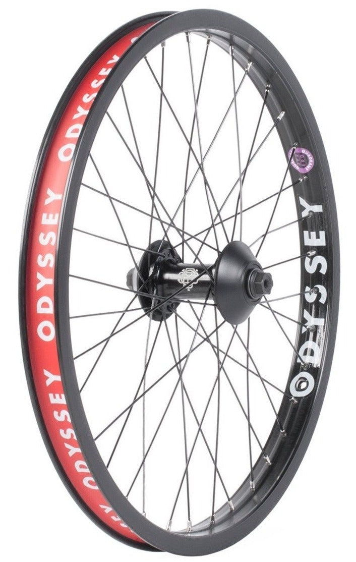 Ruota anteriore completa Odyssey Quadrant + mozzo Odyssey C5. Questa ruota completa è composta da un mozzo anteriore Odyssey C5 allacciato tramite un set di raggi Odyssey HGS ad un cerchio Odyssey Quadrant, una combo davvero perfetta per chi ha bisogno di una ruota ad un prezzo abbordabile, senza nemmeno il bisogno di assemblarla o regolarla!