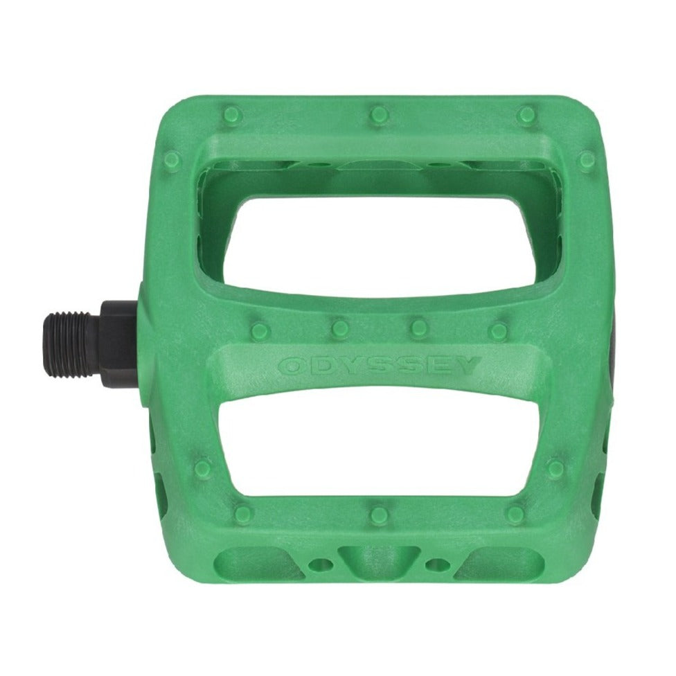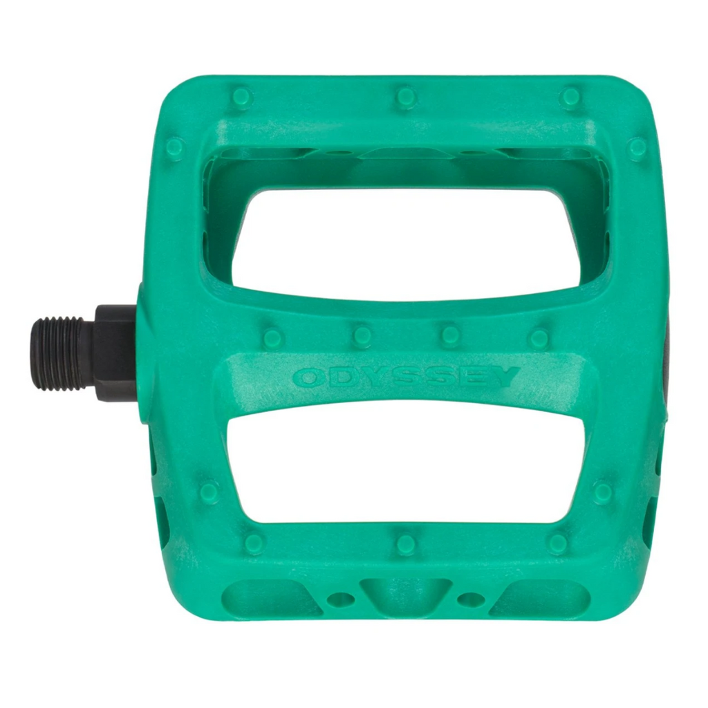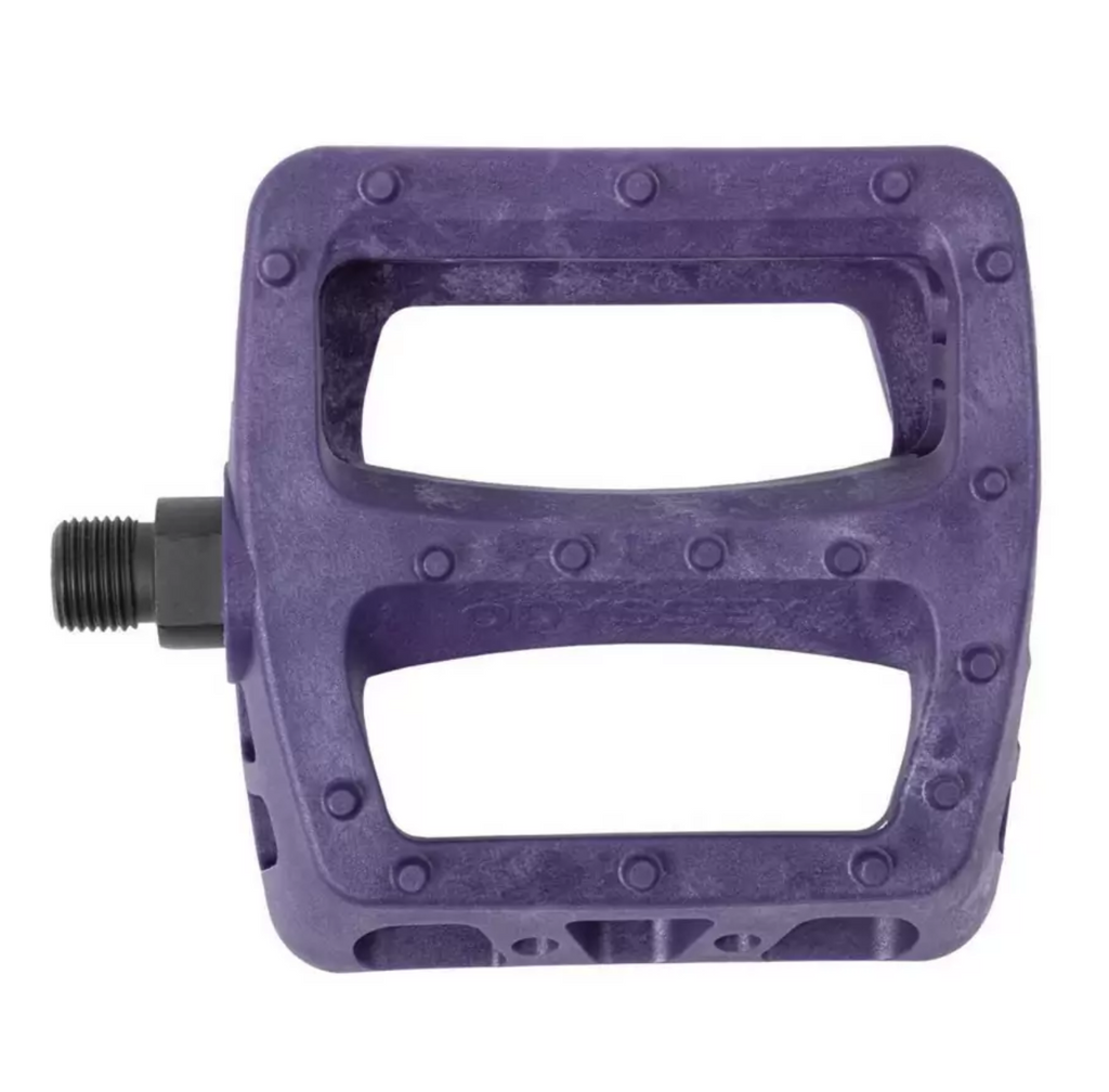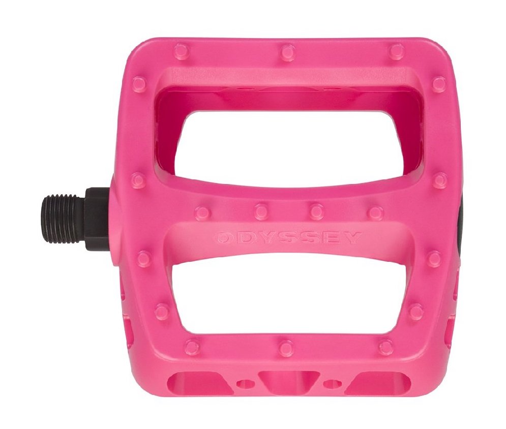 Pedali Odyssey Twisted in plastica, molto probabilmente i pedali più famosi e di successo! Con il loro design estremamente semplice, sono leggeri, economici e rinomati per la loro lunga durata. Sono stati spesso duplicati ma mai replicati, vengono realizzati utilizzando un composto plastico ad alta resistenza e sono dotati di un attacco alla pedaliera da 9/16".