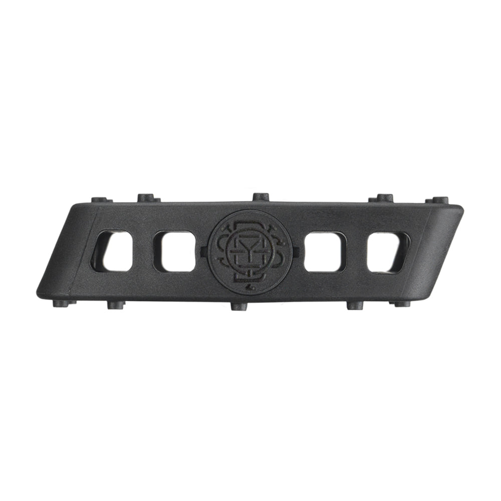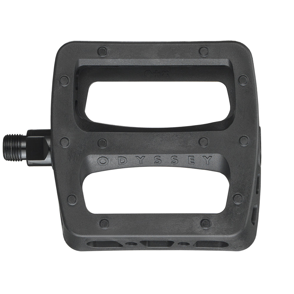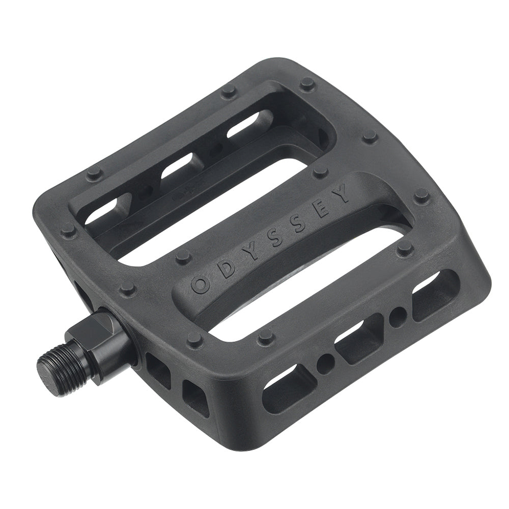 Pedali Odyssey Twisted Pro, l'evoluzione dei classici pedali in plastica Twisted! Rimangono fedeli allo stile originale dei PC Twisted, ma questa versione Pro offre una forma del corpo significativamente più grande, un'altezza più sottile e più concava, ed una tradizionale configurazione con cuscinetti a sfere. I Twisted Pro sono realizzati con un composito di nylon ad alta resistenza e si caratterizzano per avere 12 perni sovradimensionati per lato, un asse in Chromoly con filetto da 9/16", una larghezza di 104 mm e una lunghezza di 98 mm.