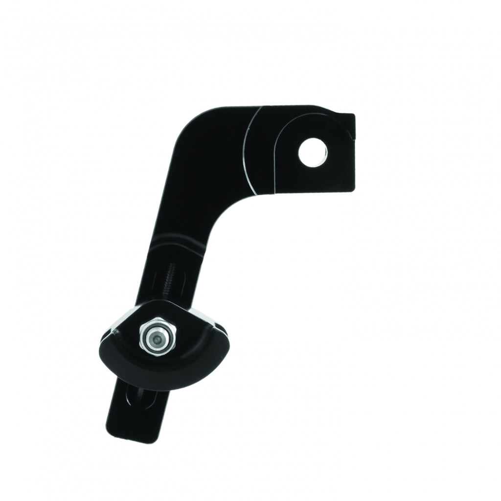 The ADS tensioner is CNC machined from 7075-T6 Aluminum and anodized for remarkable rigidity and a perfect finish. It features a chain guide pad to prevent derailment. It mounts in place of the right-side plate using a 2.5mm Allen key. To adjust the pad, tighten the M8x13mm nut without fully locking it and adjust the length screw using a 5mm Allen key. It also includes a removable plate for accessing the adjustment screw if necessary.