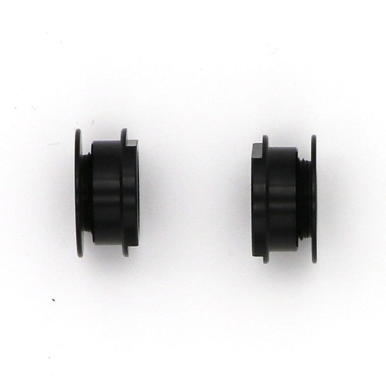 Set di adattatori per forcelle Pride Racing, che ti consentono di utilizzare gli assi standard da 10 mm (3/8") su una forcella progettata per assi da 20 mm. Realizzati in alluminio, adattabili solo su forcella in carbonio.