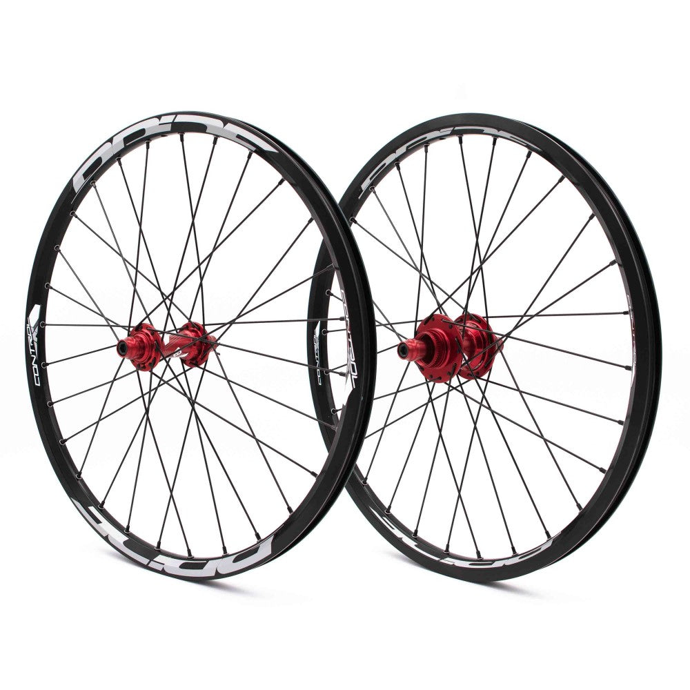 Set di ruote Pride Racing Control Expert da 1-3/8" con cerchi da 20" e 28 fori, versione per freno standard. Queste ruote sono assemblate con cerchi Pride Control in alluminio 6061 con trattamento termico T6 e mozzi Pride Control dotati del sistema Pride 6/60 che significa 180 punti di contatto.