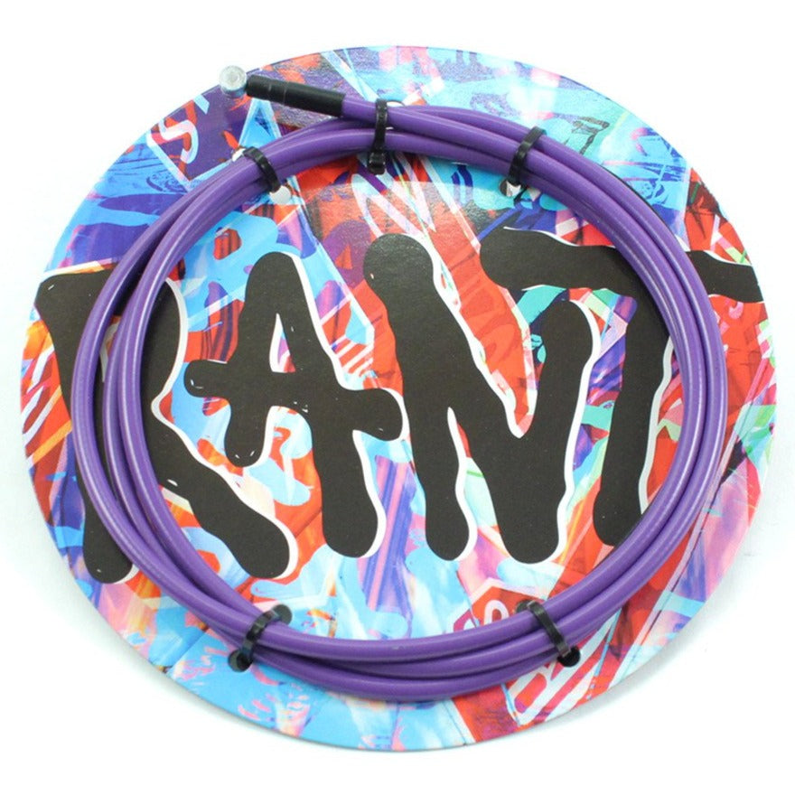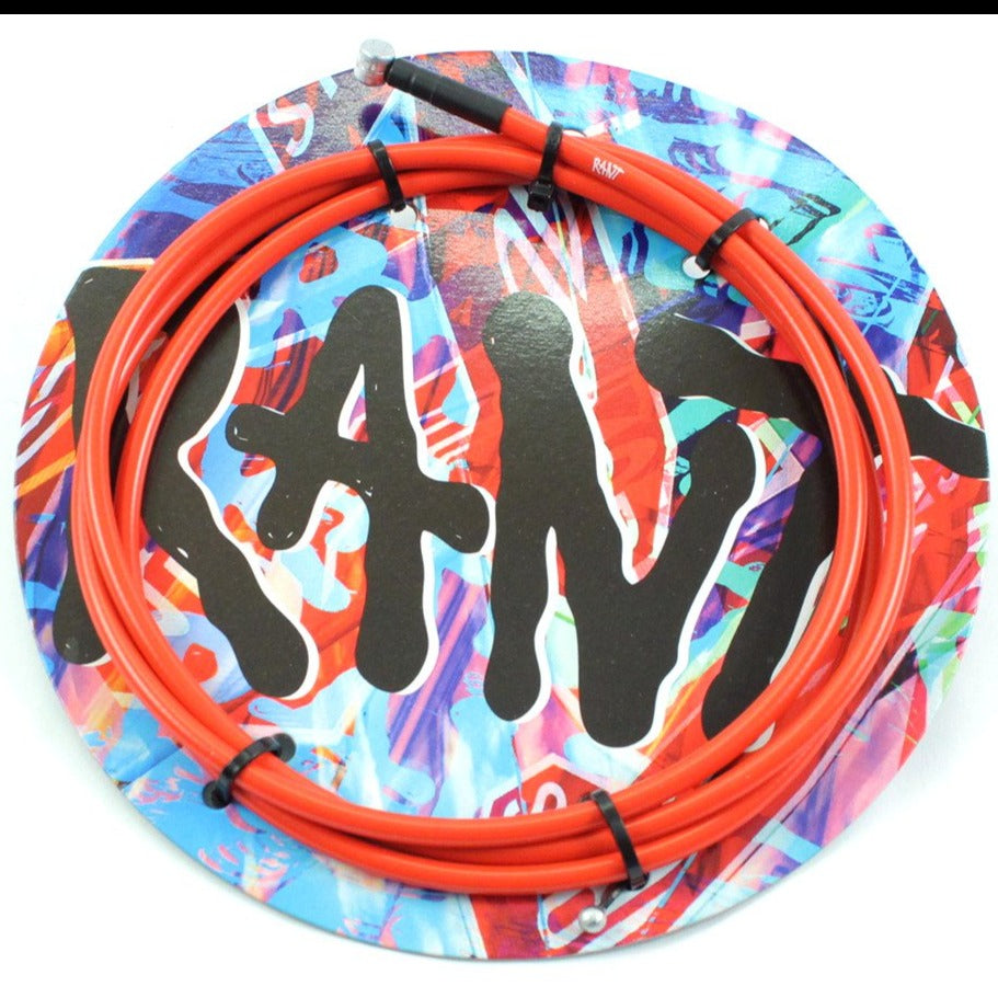 Cavo freno Rant Spring Linear, costituito da un'anima in acciaio con fili d'acciaio ad estensione lineare e rivestiti in teflon, ricoperti da una guaina esterna in plastica resistente. Rispetto ad un cavo freno con alloggiamento metallico cablato, questo cavo del freno lineare consente prestazioni di frenata più precise. Il tubo in teflon aggiuntivo e il cavo rivestito in teflon offrono prestazioni di frenata fluide grazie al basso attrito, anche se il cavo dovesse essere arrotolato attorno al tubo sterzo della tua bici dopo una rotazione a 360°.