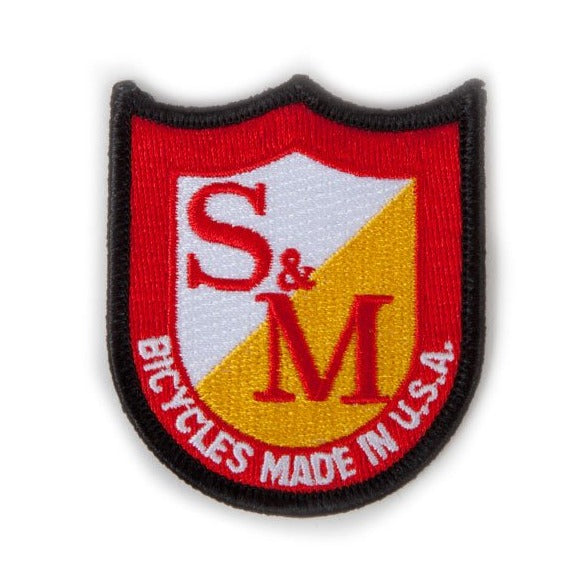 Toppa S&M Shield, con logo classico, per poter personalizzare qualsiasi capo d'abbigliamento o accessorio come ad esempio uno zaino. Tessuto ricamato su un supporto termosaldato, dimensioni 6,35 cm x 5 cm (2,5" x 2").