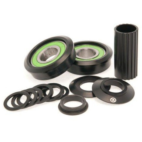 Kit di cuscinetti del movimento centrale SaltPlus Echo American BB, che comprende 2 cuscinetti sigillati di precisione, 2 distanziali conici, un distanziale interno in alluminio, diversi distanziali in acciaio per la pedaliera per gestire al meglio l'allineamento della catena.