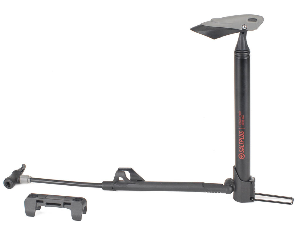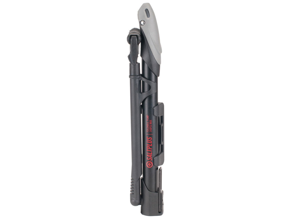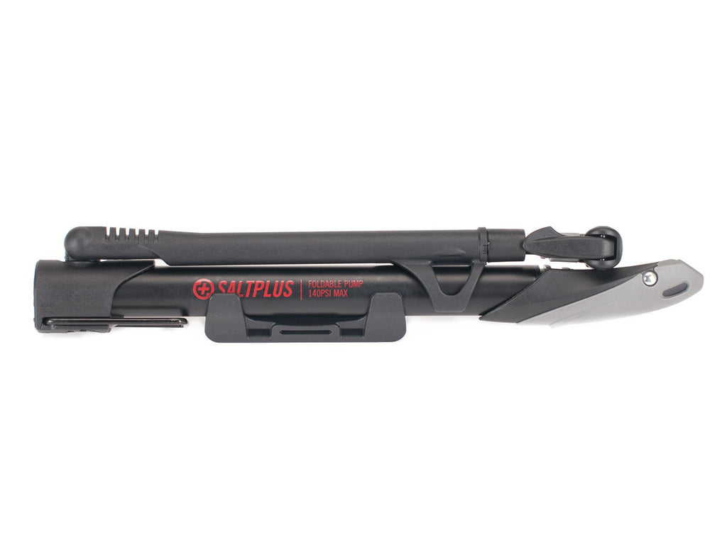 Pompa ad aria SaltPlus Pro Mini Foldable da 140 PSI, molto sottile ma allo stesso tempo di alta qualità, in quanto genera pressioni fino a 9,5 bar (140 PSI). Questa pompa è realizzata in alluminio e nylon, consente di gonfiare camere d'aria sia con valvola Shrader che Presta. Il design pieghevole vi consentirà di portarla facilmente nel vostro zaino pronta per ogni evenienza.