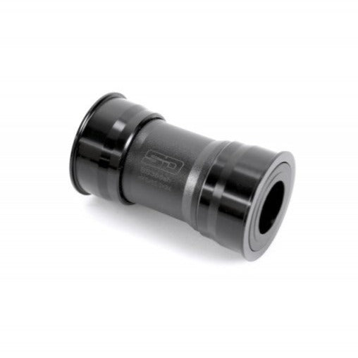 Movimento centrale esterno SD BB386, si adatta a qualsiasi telaio da BMX Race che utilizza un guscio da 46 mm per adattarsi alle pedivelle con un perno da 24 mm. I cuscinetti sono tenuti in posizione da calotte in alluminio forgiato e lavorato a CNC che scorrono all'esterno del guscio BB per una maggiore durata e resistenza.
