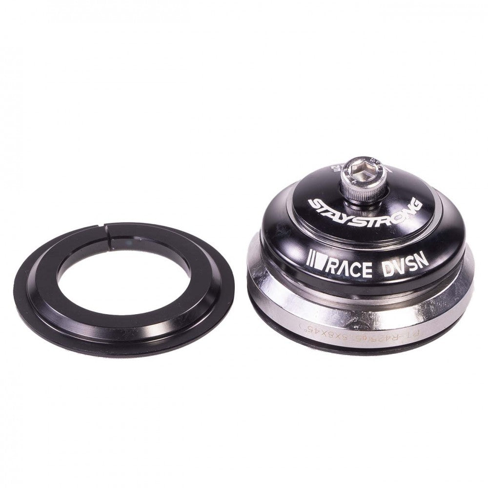 Serie sterzo integrata Stay Strong Tapered da 1 1/8" - 1 1/2", adatta per BMX da Race. Composta da cuscinetti sigillati, 2 spessori e bullone/tappo di precarico. Questa serie sterzo può essere usata anche con un canotto forcella da 1 1/8" grazie al riduttore incluso.