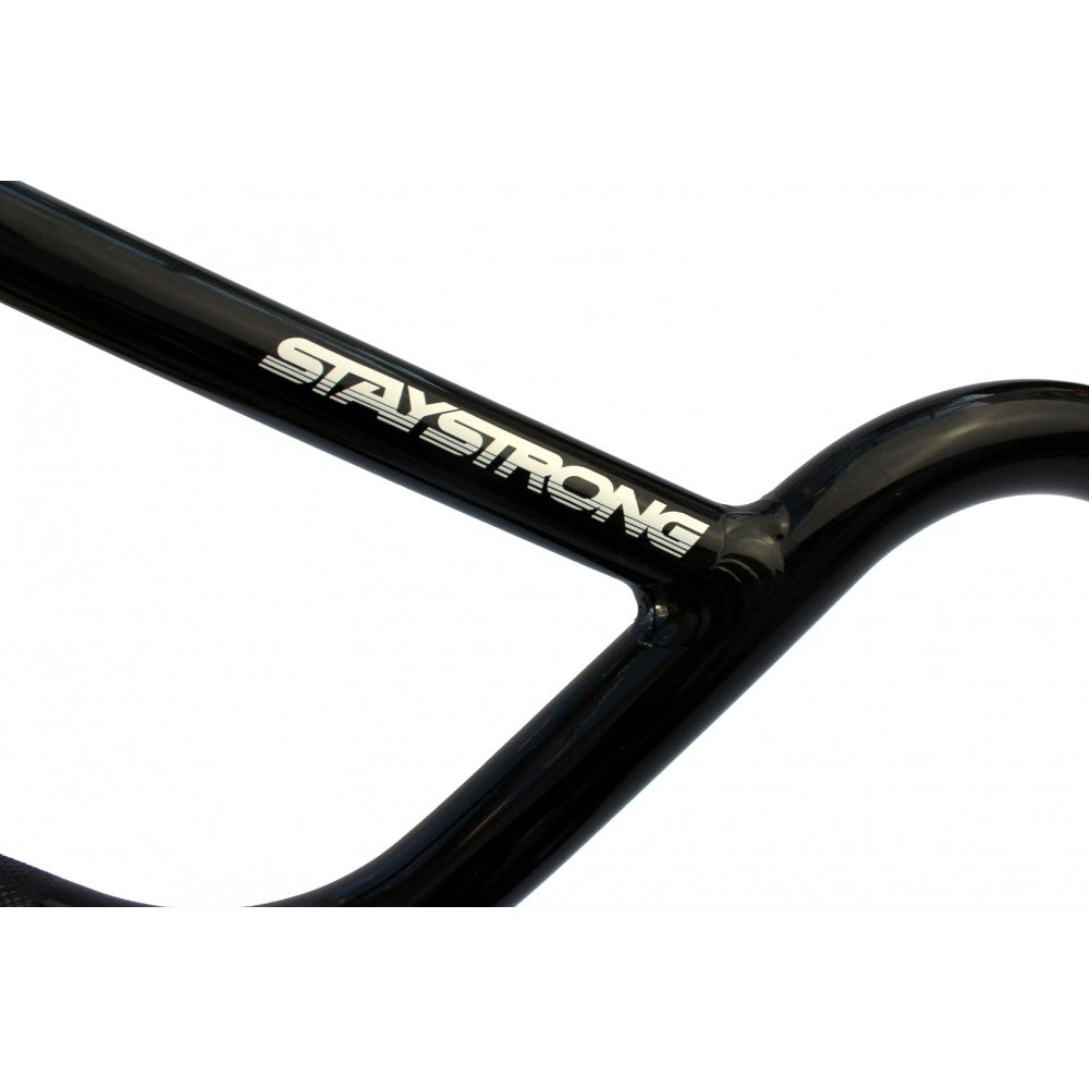 Manubrio a 2 pezzi Stay Strong V2 Cruiser, realizzato in 100% acciaio 4130 Cr-Mo trattato termicamente. Questo manubrio ha la stessa forma del V-One, con un backsweep di 10° e un upsweep di 2,5°. Diametro della zona di serraggio: 22,2 mm.