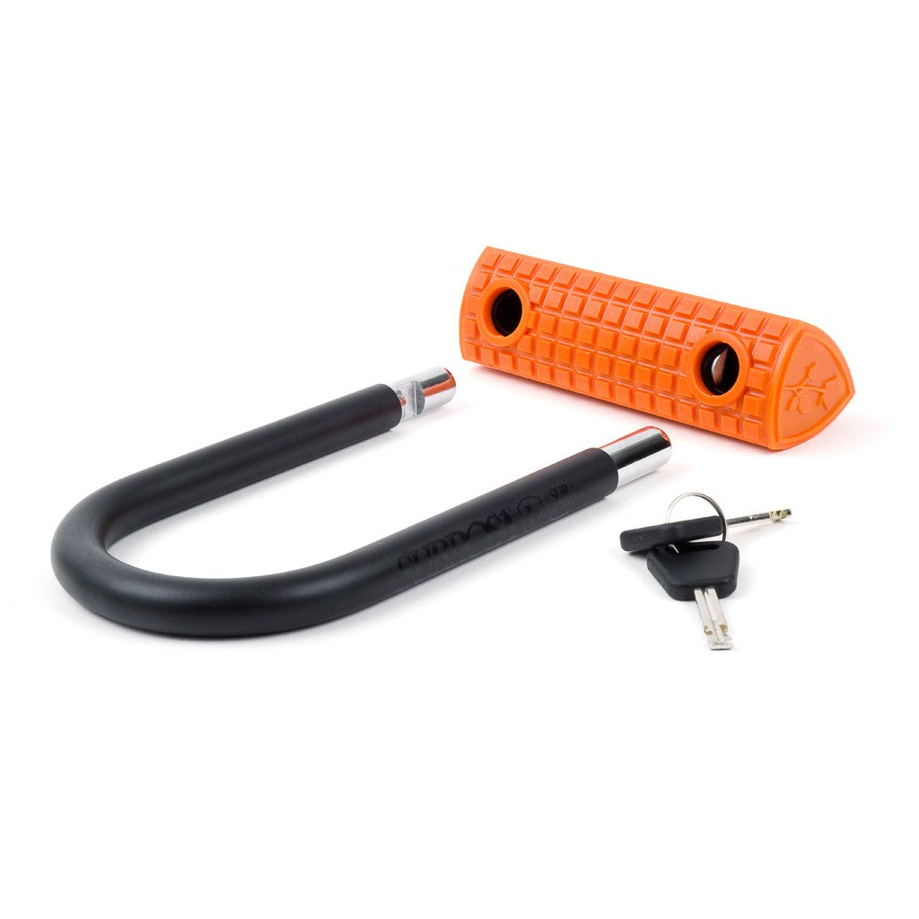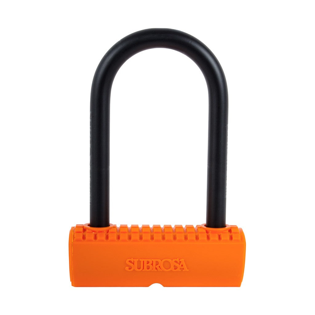 Lucchetto Subrosa Shield, realizzato con corpo e chiusura in acciaio temprato che resiste a tagli e leve di ogni tipo. Il copri chiusura è realizzato in PVS mentre la copertura del corpo è in POM per resistere maggiormente a graffi e ad agenti atmosferici. Il doppio grillo di bloccaggio resiste ad un'enorme forza di trazione, con il cilindro di bloccaggio del disco che possiede 1400 combinazioni di chiavi minime per una protezione superiore. Grazie alle sue dimensioni contenute di 20,5 cm in lunghezza e di 13,5 cm in larghezza (8" x 5.25"), si adatta alla tasca posteriore della maggior parte dei jeans.