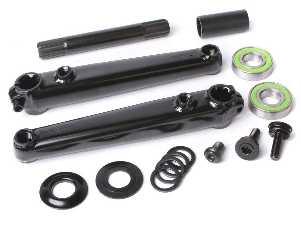Pedaliera Sunday Saker V2 a 3 pezzi, progettata per essere economica, ma allo stesso tempo resistente. Caratterizzata da pedivelle tubolari in Chromoly con un design a bullone singolo. Inoltre, utilizza un asse in Chromoly da 19 mm con 8 scanalature e include un set di cuscinetti sigillati da 19 mm con distanziali per il movimento centrale stile Mid BB. Compatibile grazie al doppio foro sia con LHD (left hand drive, guida a sinistra) e RHD (right hand drive, guida a destra).