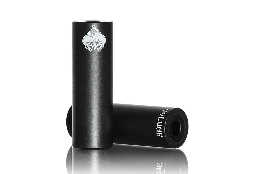The Volume Bikes "Melee" Peg is the combination of a light weight, CNC machined aluminium peg and a additionally plugged nylon sleeve which offers while grinding less noise and better slipping on coal and steel surfaces and still is quite durable.